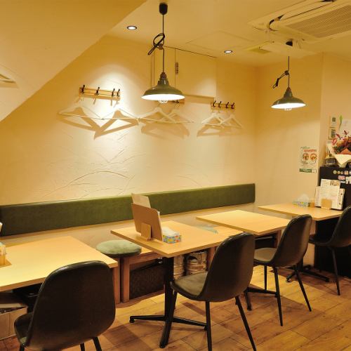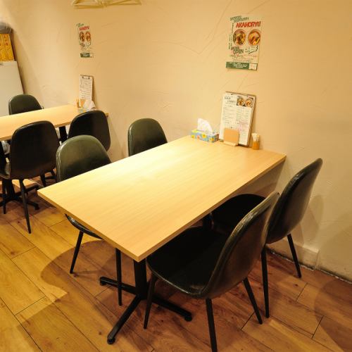【ゆったり寛げる憩いの場】友人や家族と楽しむテーブル席】2名用と4名用のテーブル席を配置しており、少人数から中規模のグループまで柔軟に対応可能です。スパイスの香りが漂う心地よい空間は、友人とのランチやご家族での夕食に最適。こだわりのスープカレーを味わいながら、リラックスして楽しめる居心地の良さが自慢!